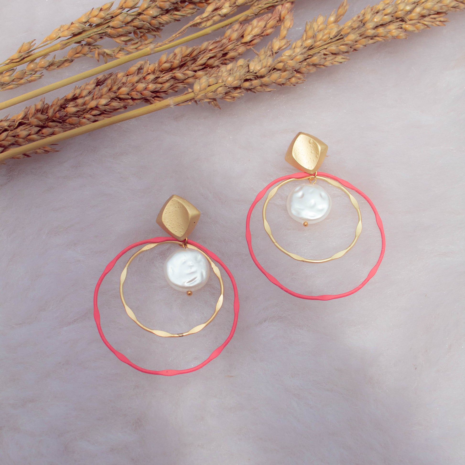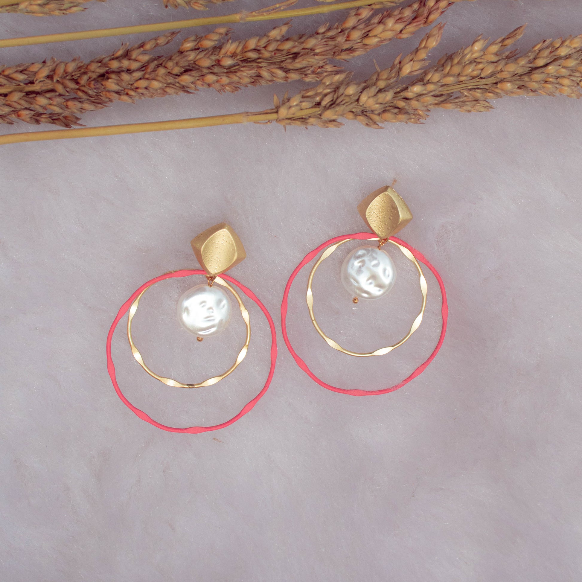 Pink/Black and Gold Baroque Pearl Earrings
