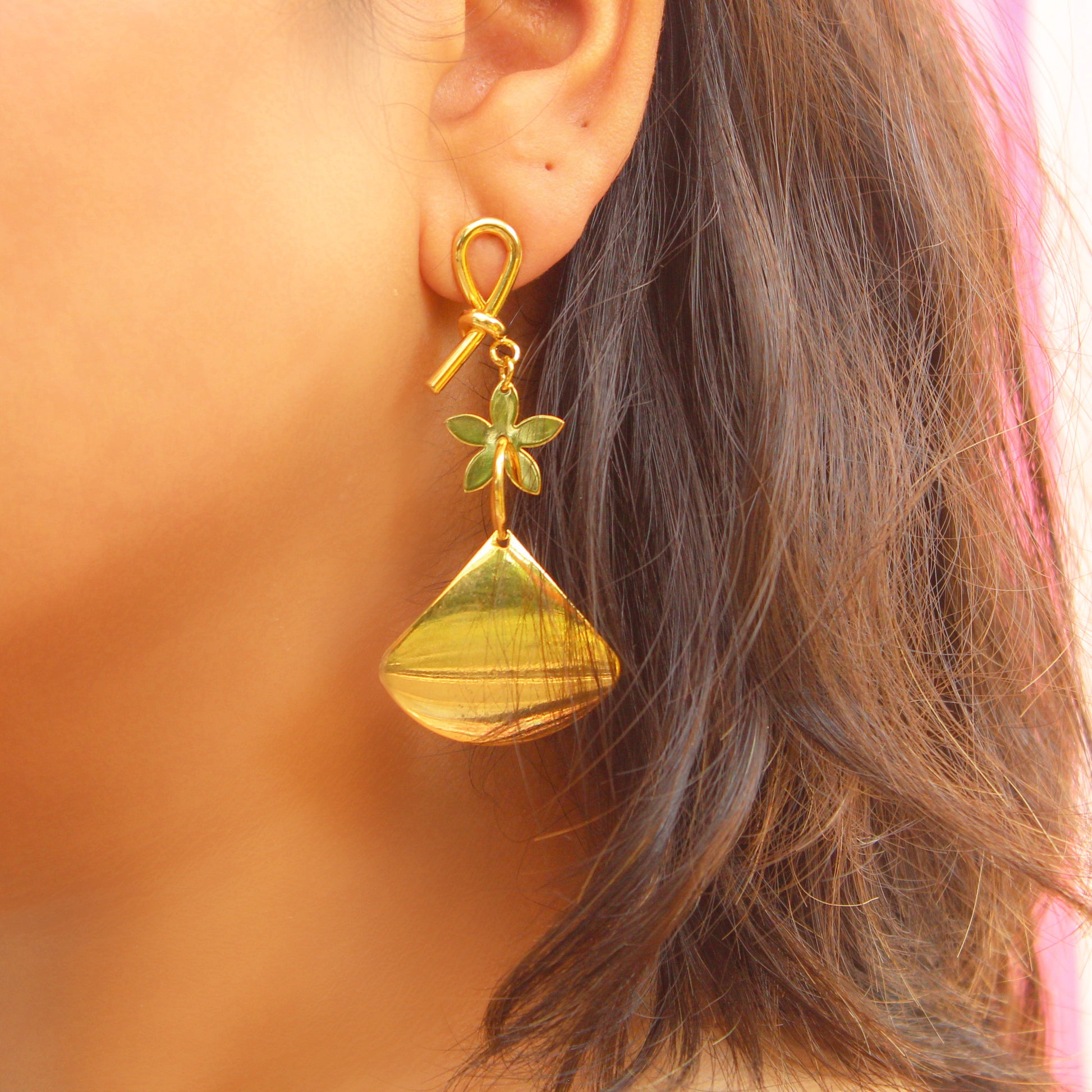 These earrings have a stylish floral twist with drop motifs. The cascading drops add a playful touch to the design. They are versatile and fashionable, perfect for enhancing various outfits, from casual jeans to formal dresses and shirts.
