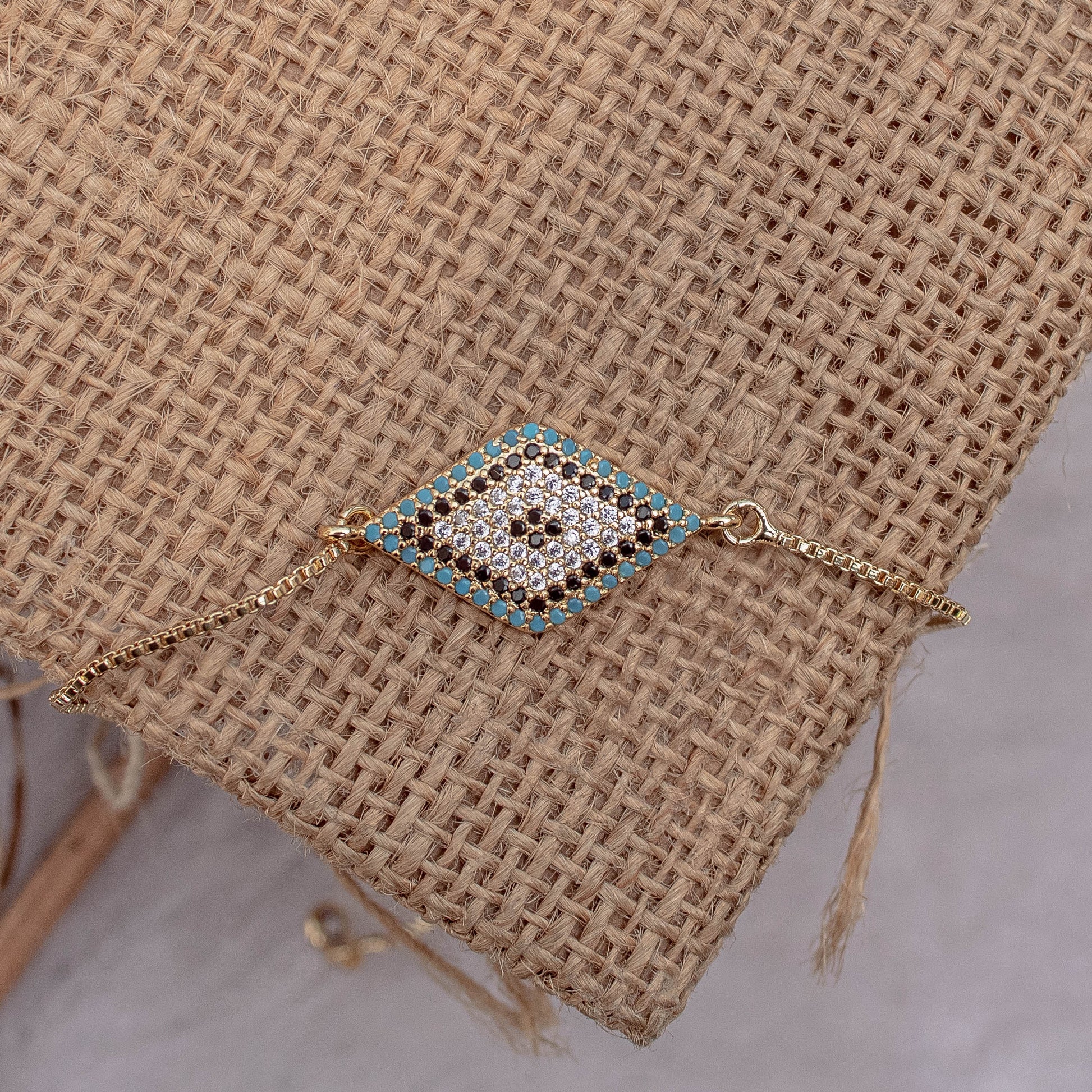 Diamond Shape Evil Eye Bracelet with Multicolor Cubic Zircons detailing